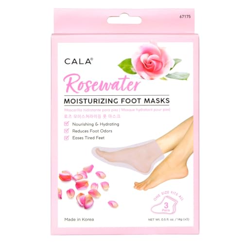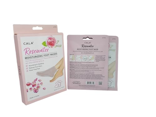 Cala Rosewater moisturizing Foot mask socks gives you nourishing & Hydrating skin. Reduces foot odors. Eases tired feet. Wash and dry feet thoroughly to remove moisture. Insert feet inside hand masks. Leave on for 20-30 minutes. Massage any excess product onto the skin for long lasting hydration.