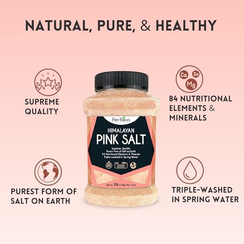 Herbion Naturals Himalayan Pink Salt Jar Fine Grain, GMO Free, Supreme Quality Chemical Free, Vegan, Kosher Certified, Fine Grain All-Natural Salt, Triple-Washed in Spring Water, 5 lbs