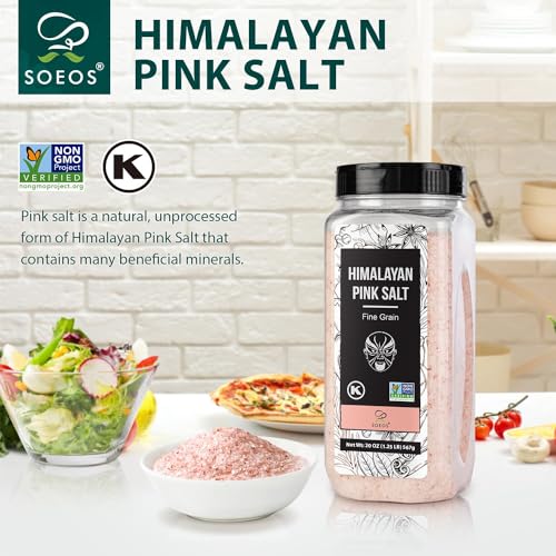 Soeos Himalayan Salt – Fine Grain, 20 oz, Himalayan Pink Salt, Pure Rock Salt for Grinders and Salt Mills, Kosher & Natural Certified, Healthy