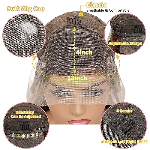 4/27 Colored Human Hair Lace Front Wigs Cap: 22.5 Inch Medium Cap Fit Most Heads, 4 Combs and 2 Adjustable Straps, Easy to Wear and Stable, Beginner-friendly, Durable and Soft, Ombre Lace Front Wig, Breathable and Comfortable