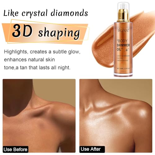 ✦ SHIMMERING BODY GLOWING LUMINIZER — This shimmer body oil brightens your complexion, the flecks of shimmer catch the light and make your skin glow, giving your skin an attractive shimmer in the sun, giving you a more natural and healthier complexion.