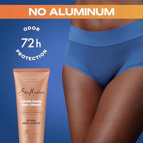 Embrace a deodorant uniquely designed to complement and celebrate the beauty of Rich Melanin skin. We want to celebrate your self-determination and confidence by delivering uncompromising protection and freshness that you’ve been waiting for. Get the protection your Rich Melanin skin deserves with this Coconut & Hibiscus No Aluminum, Plant-Based Whole Body Deodorant cream that is Black gynecologist approved. With the deliciously tropical fresh scent of Coconut & Hibiscus, our Whole Body Deodorant cream is perfect for anywhere where you want to control odor. From your armpits to your thighs and everything in between, our deodorant cream helps you feel empowered and fresh all day long. Our Whole Body Coconut & Hibiscus Deo Cream has corn starch for sweat absorption, and our non-irritating formula is packed with skin-loving, natural ingredients like Fair Trade Shea Butter. We don’t use aluminum, baking soda, or parabens, and our deodorant is Black dermatologist and gynecologist approved, so you can have peace of mind that you’re giving your skin the best care. You’ll love the delicious, addictive Coconut & Hibiscus scent. It’s an iconic SheaMoisture fan-favorite, and we’re confident that you’ll love this delightfully tropical scent, too. Our deodorant cream glides on invisible. Use our whole body deodorant cream for Rich Melanin skin anywhere you need it for all-day odor control and freshness you can count on! Our story: SheaMoisture is the legacy of Sofi Tucker, a pioneering mother of four and entrepreneur, who sold shea butter, African black soap, and homemade beauty preparations in Sierra Leone in 1912. We honor her vision by continuing to formulate with raw shea butter handcrafted by women in Africa. With every purchase, you show support of our mission to reinvest back in our communities. Black Derm Approved – Dermatologist Survey, January 2024