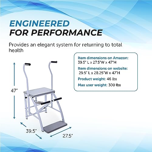 DESIGNED FOR COMFORT – This chair gym is designed with a padded cushion and platform, and height-adjustable padded handlebars that provide comfort during exercise. This compact pilates chair provides high-quality upper and lower body workouts in the comfort of your home.